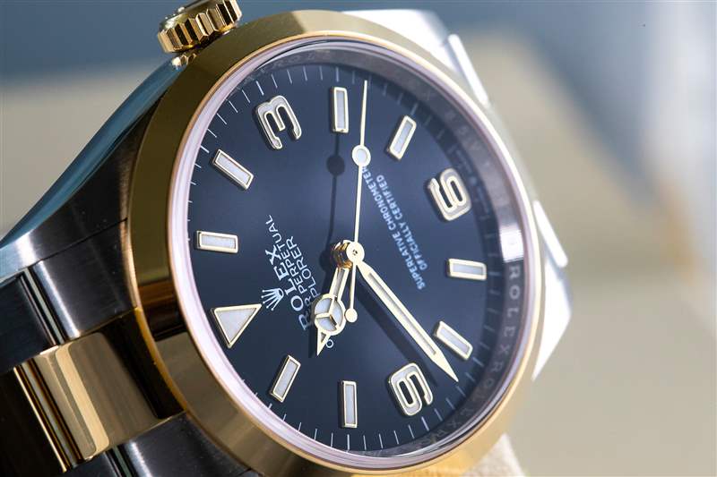 就雙色手表而言,這款手表非常低調(diào)。雙音不會對你大喊大叫。當(dāng)你想享受它時,它就在那里,但你看起來不像80年代糟糕的電影中的追隨者。不要誤會我的意思,你肯定會看到黃金,但它是一種柔軟的黃金,適合我們當(dāng)前的時刻。我喜歡勞力士沒有屈服於在這裡走Everose的誘惑。我認(rèn)為那塊手表看起來像是雙色探險家的漫畫,而這件作品則感覺真實且值得尊重。