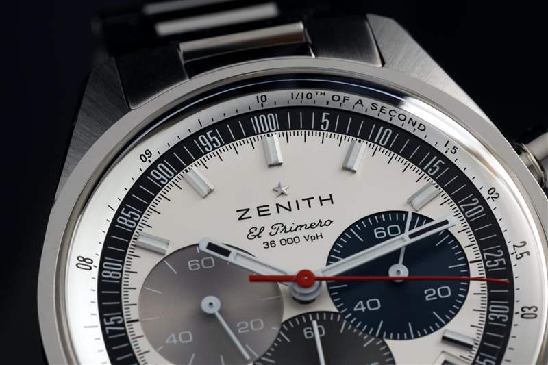 全新EL PRIMERO 3600自動腕表內置真力時計時腕表,讓您能夠以十分之一秒的間隔追蹤經過的時間。