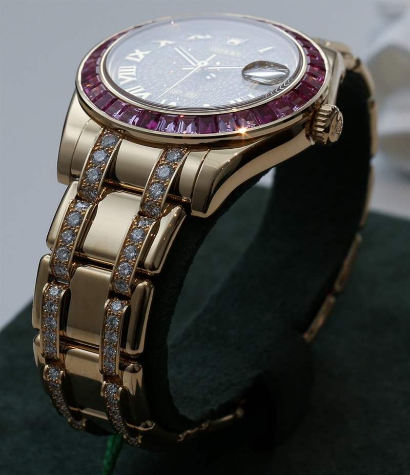 所以這些圖片是兩款新款 Datejust Pearlmaster 34 手表的圖片,它們將包含 2236 機芯。Datejust 的 Pearlmaster 版本具有獨特的手鏈和其他一些獨特的功能。當然,這些特征通常包括寶石裝飾和貴金屬表殼和表鏈結構。不出所料,2014 年的日志型 Pearlmaster 34 將采用 18k 黃金、白金或玫瑰金。白金款鑲嵌藍寶石,黃金款鑲嵌鉆石,玫瑰金 (Everose) 款鑲嵌紅寶石。所有型號均配備全鑲鉆表盤。廣告留言廣告信息結束
