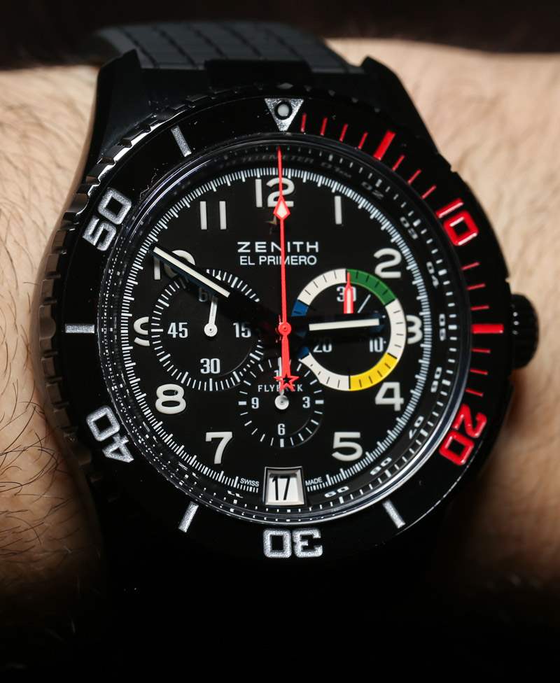 2013 年將見證著名的Zenith?Rainbow 限量版新版本的首次亮相。這將是可愛的Zenith Stratos的一個版本,我們有一個早期的動手外觀。腕表的官方名稱為真力時El Primero Stratos Flyback Rainbow Boutique Edition腕表,限量發行250枚。備受追捧的經典彩虹航空腕表于 1990 年代以 40 毫米寬的 Zenith El Primero Rainbow Flyback 腕表問世。真力時表示,他們是為法國航空俱樂部 Aero-Club De France 制作的,表盤上的顏色只是“航空顏色”。它是我最喜歡的老式 Zenith 運動手表之一,我很高興今天看到一個新版本。
