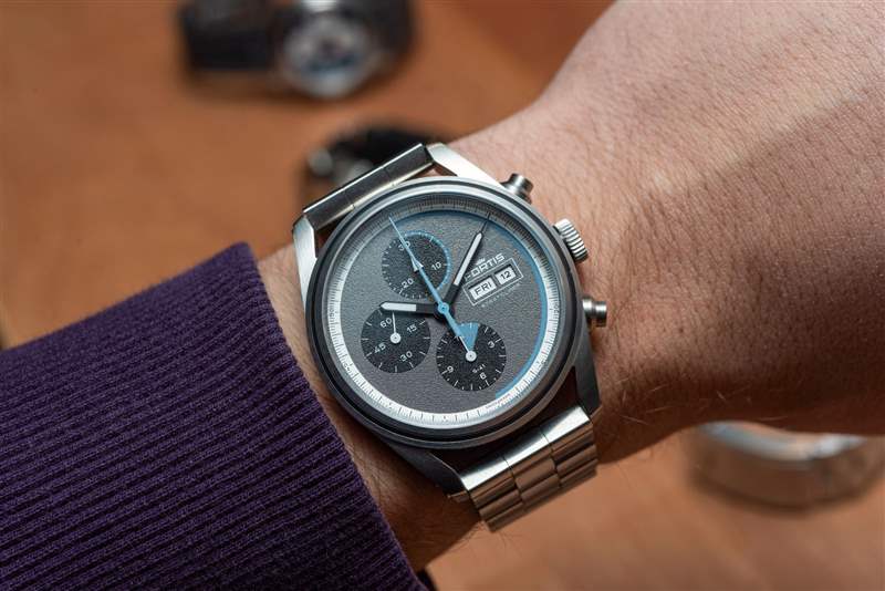 Fortis Stratoliner 的一切都采用迷人的日耳曼風格,從單個表帶鏈節到雙層表帶,都很粗壯,但并不笨重??梢钥隙ǖ氖?,它不是手腕上的卡地亞 Tank,但這里的目標人群顯然是在追求一款設計精致、堅固耐用的包。坦率地說,這是一款想要獲得太空認證的手表的先決條件。