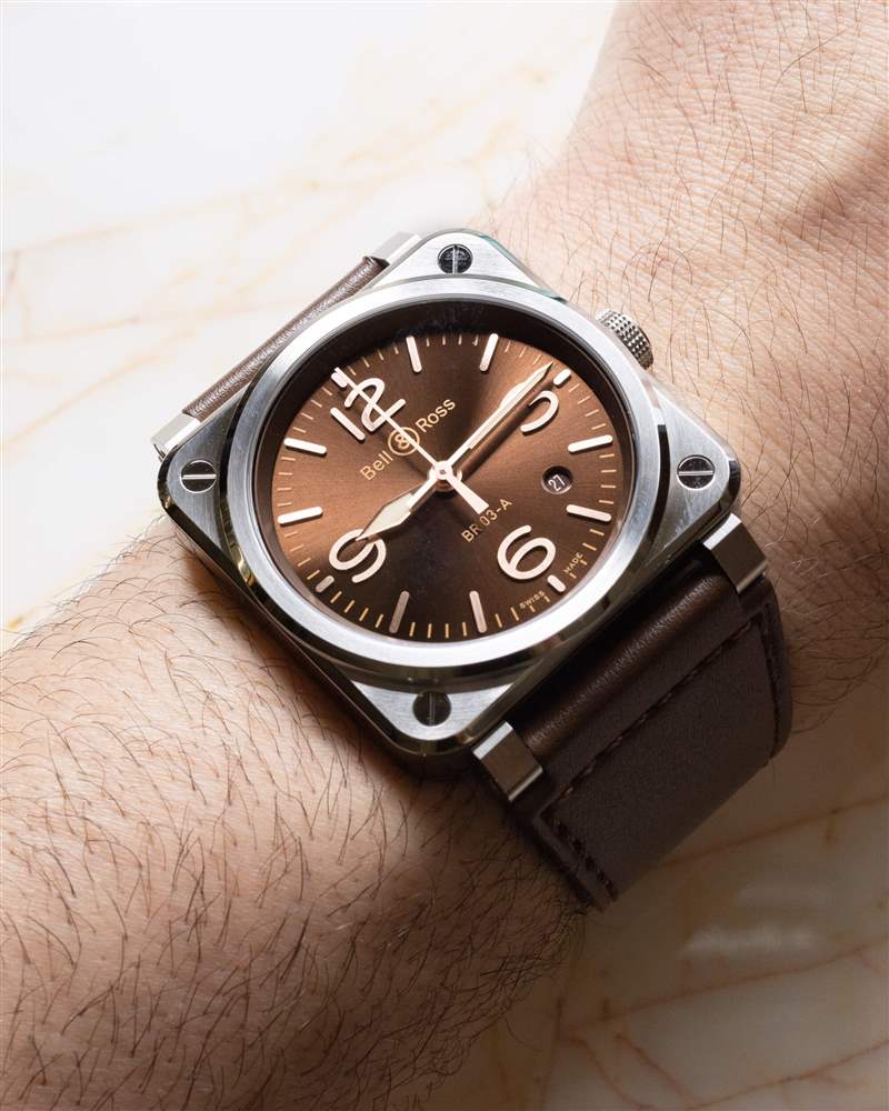 好吧,好吧,你已經把表盤整理好了,但你想了解這個較小的箱子。1毫米真的能帶來改變嗎?確實可以。在普通的圓形手表上,您可以在不觸及任何其他尺寸的情況下將直徑削掉 1 毫米,但對于方形手表,您必須保持其方形(顯然)。減少長度寬度減少手表的占地面積是僅減少寬度的兩倍。這里的效果是手表明顯變小了,但仍然保留了 Bell & Ross Instrument 手表的厚實方形古怪風格。如果您從未佩戴過方形 Bell & Ross(或任何方形手表),那么重要的是要知道表帶??的設計(向外展開至表耳的整個寬度而不是內部寬度),讓手表佩戴起來更好,因為手表幾乎成為袖口的一部分,而不是讓手表顯得太突出。我嘗試過帶有標準表帶的 BR 03,但手腕上的感覺完全不同,我不推薦。廣告訊息廣告信息結束